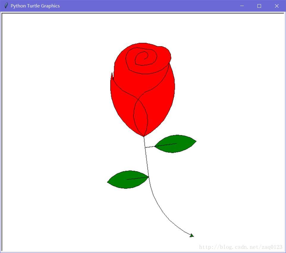 turtle.fillcolor("red") turtle.begin_fill() turtle.circle(10,180) turtle.circle(25,110) turtle.left(50) turtle.circle(60,45) turtle.circle(20,170) turtle.right(24) turtle.fd(30) turtle.left(10) turtle.circle(30,110) turtle.fd(20) turtle.left(40) turtle.circle(90,70) turtle.circle(30,150) turtle.right(30) turtle.fd(15) turtle.circle(80,90) turtle.left(15) turtle.fd(45) turtle.right(165) turtle.fd(20) turtle.left(155) turtle.circle(150,80) turtle.left(50) turtle.circle(150,90) turtle.end_fill()